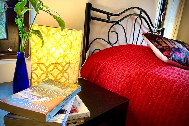 The villa is in a semi wild 3 acre garden, with a natural water stream at the end of the property. With thousands of trees of varied species, including several fruit as well as medicinal trees, the garden has several comfortable hangout spaces, to read a book, laze, or even meditate and relax. And nothing makes it more perfect - a good size swimming pool to relax and have your Kings beer. Yes, the Vagator and Anjuna beaches are hardly 10 mins drive away, but this pool serves the ones who are lazy to even travel that much and bake in the sun alongside the butterflies!